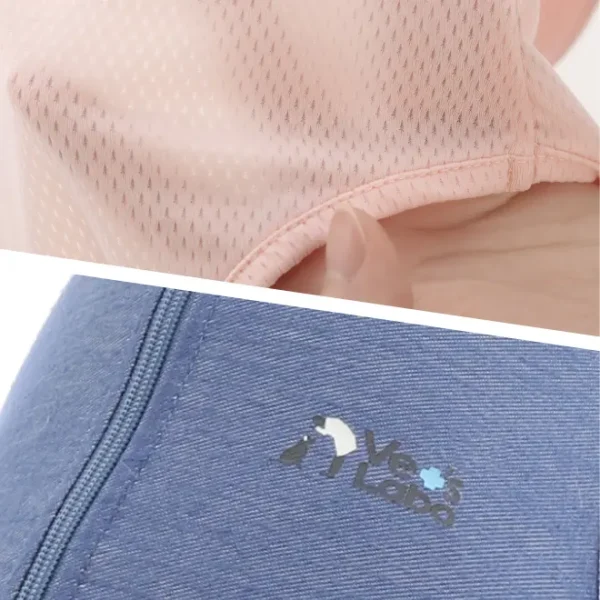 通気性の良いメッシュ素材や伸縮性のあるデニム素材を使用。