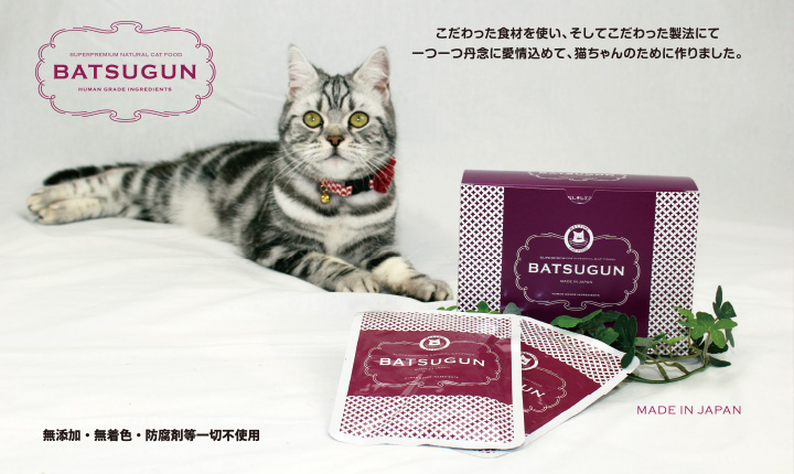 全て私達が食る事が出来る天然国産食材だけを使い、猫ちゃんの体の事を第一に考えて、丹念に愛情込めて自社工場にて作りました。また、水分不足気味な仔の事を考えて、ウェットフードにし、120℃の高温で圧をかけてレトルトタイプにしました。